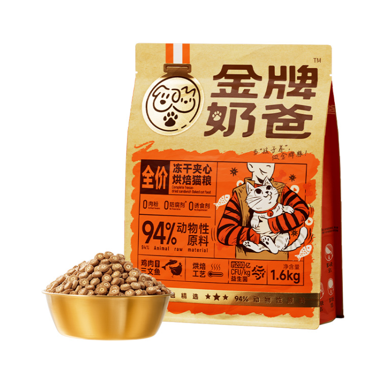 该款冻干夹心烘焙猫粮富含94%动物性原料,鲜肉占比高达84%,45%粗蛋白,满足猫咪营养所需,优质白羽鸡搭配深海三文鱼、金枪鱼,提供优质蛋白,满足猫咪肉食天性。采用低温烘焙工艺,保留食材原香,3%冻干的额外添加,搭配冻干鸡肉粉,适口性提升。0诱食剂、0肉粉、0防腐剂、0谷物,安全低敏更放心。添加多种维生素、矿物质、牛磺酸、约200亿CFU/kg益生菌和纤维素,双益生元+专利菌种,促进肠道消化,改善肠道环境,多维营养补充,全面支持猫咪健康。额外添加鱼油+卵磷脂+牛磺酸、蔓越莓干+螺旋藻粉,助力猫咪毛发亮泽,提供天然抗氧化成分,提升猫咪免疫力。